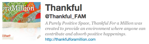 Afternoon! Hope everyone is enjoying their Sunday. I woke up early and got a great workout in, so I’m very happy. The other thing that makes me happy is that Thankful For a Million now has a twitter: Thankful_FAM. A number of my friends on twitter post positive, exiting things, quotes etc. If you ever feel inclined to share exciting news, an inspiring quote or anything about something that moves you, tag @Thankful_FAM in your post, and it will appear on the blog! I’m look forward to this being an easier, faster way to include contributions. Who knows, maybe one day we will have one million thankful tweets!