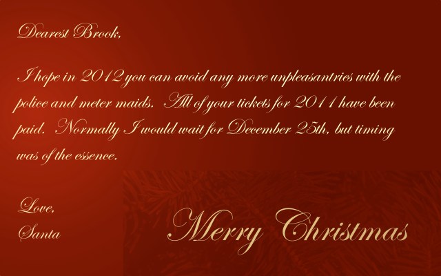 Santa, for the record, one of these street sweeping tickets was received while doing a favor for a friend. Just sayin’… I’m not all bad.
